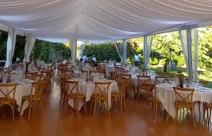 Plusieurs de nos tentes de réception ont des options de personnalisation permettant de modifier leur aspect (entoilage des côtés, velum, habillage cristal)…